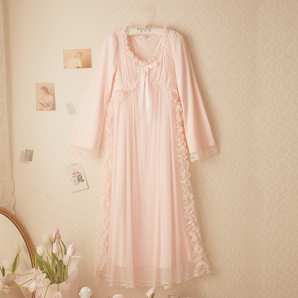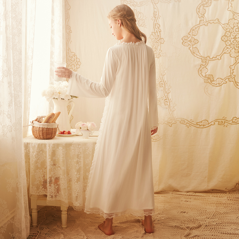 rosetree palace vinting retro sleeping dress lady spring autumn season sexy lace princess wind pyjamas long sleeve long version sleeping dress