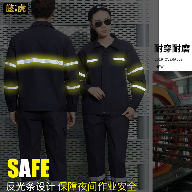 Pure cotton spring and autumn long-sleeved electric welding overalls suit men's labor insurance clothing cotton wear-resistant reflective strip workshop factory clothing tooling
