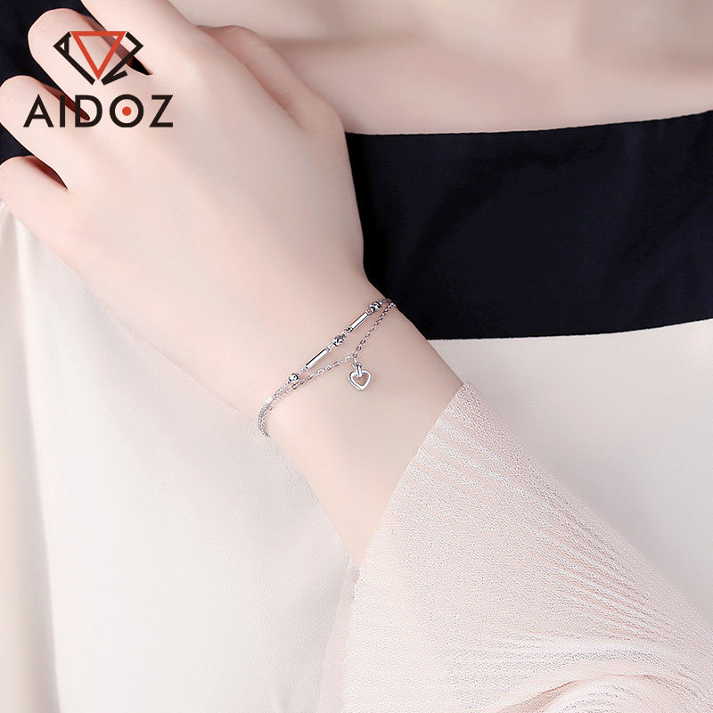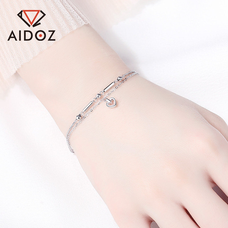 Love Duo Drill Heart-shaped Double Platinum Handmade Woman Love pt950 Platinum Bracelet Birthday Gift To Girlfriend