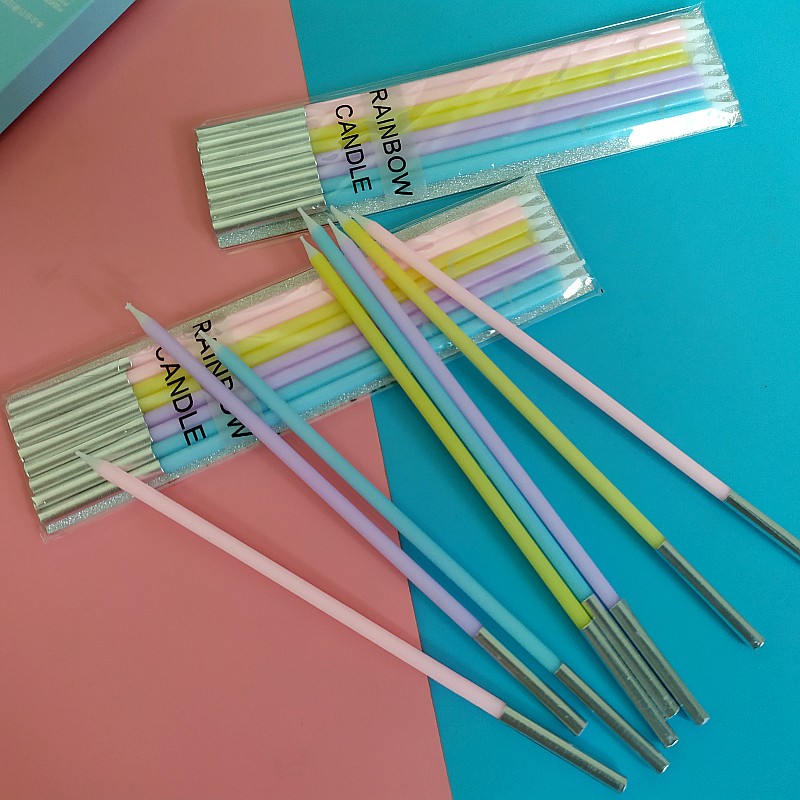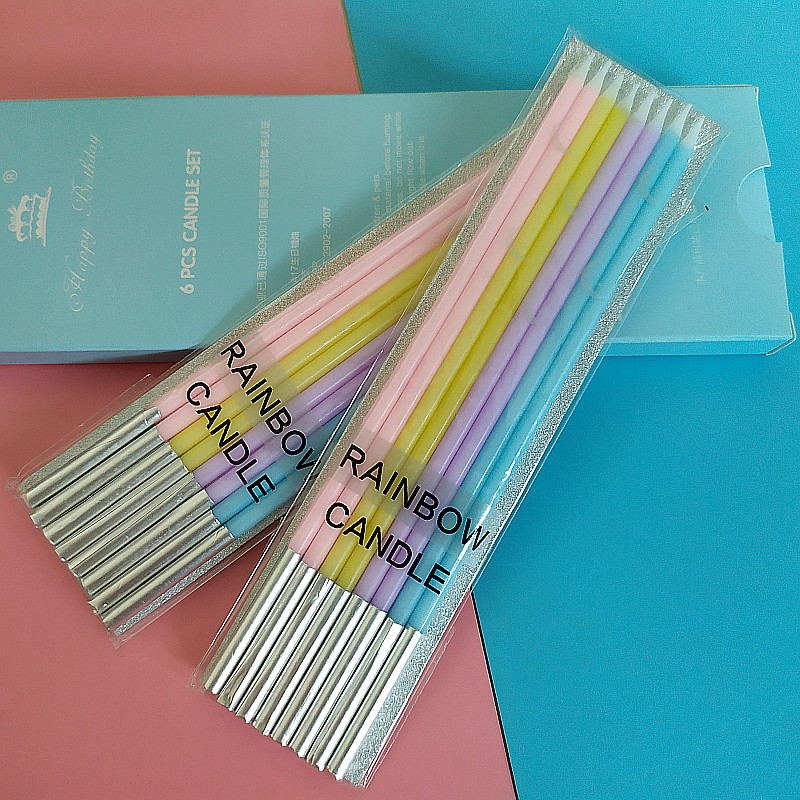 Birthday Rainbow Candle Seven Colorful Asymptotic Smokeless Candle Suit Creative Party Cake Decoration Supplies Long Pole Candle