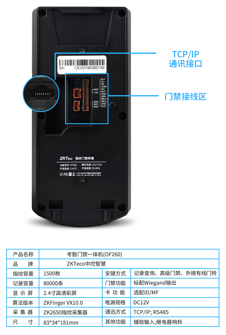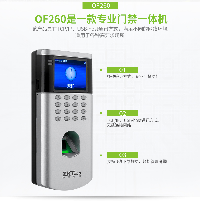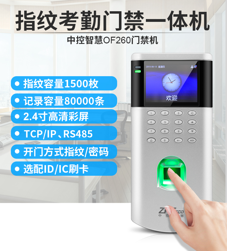 ZKTeco central control wisdom OF260 fingerprint recognition password access control attendance card machine all-in-one machine card network