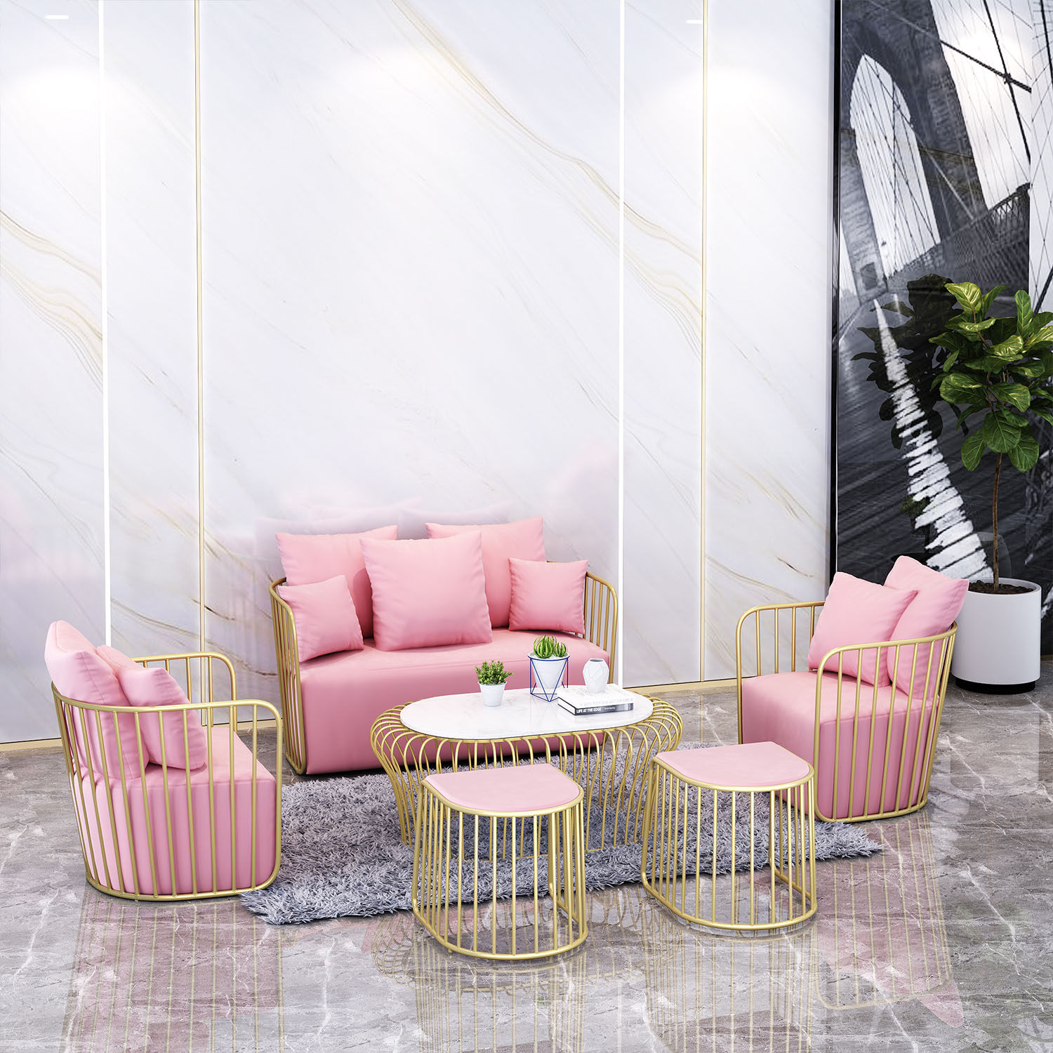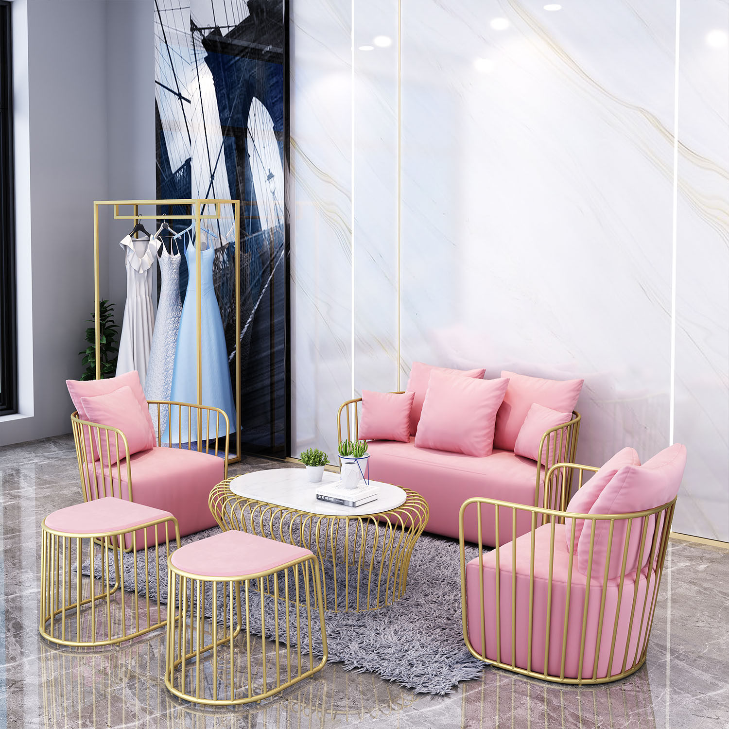 Nordic Tennis Red Clothing Shop Casual Little Sofa Gold Light Luxury INS Creative Medecor Shop Single Double Table and table