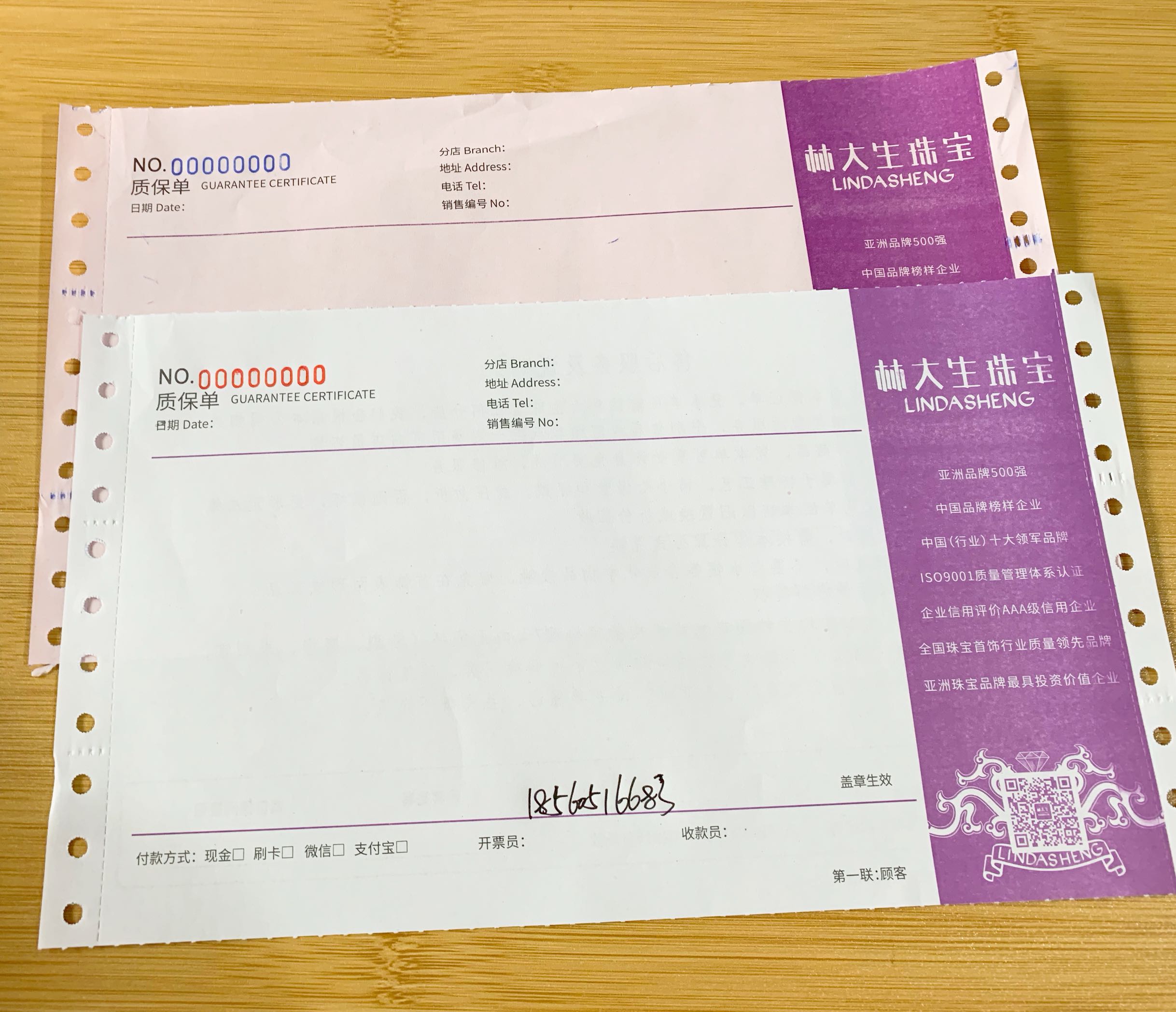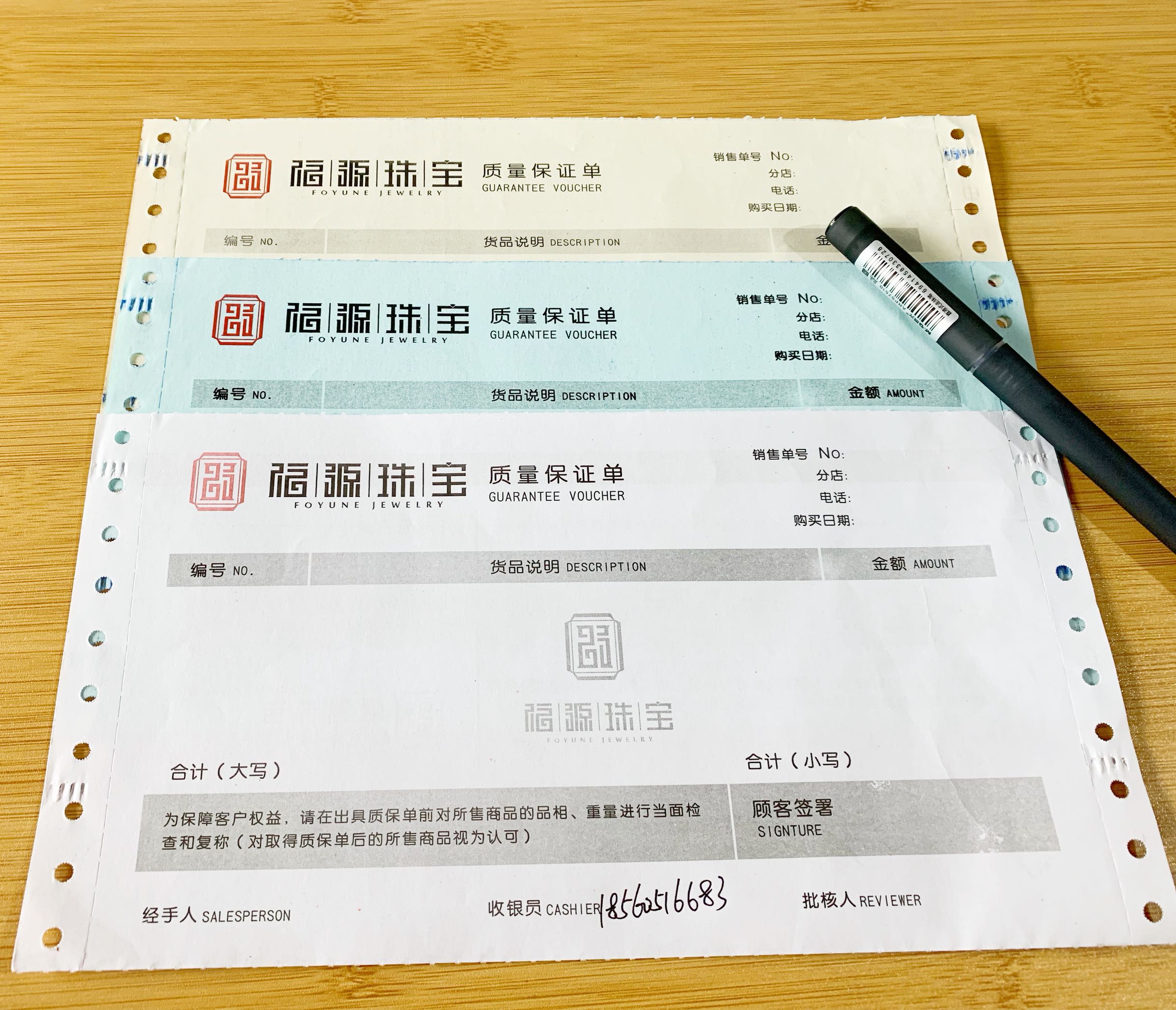 Set to customize Jewelry Jewelry Gold Shop Receipt Quality Assurance Single Printed Sales Single Computer Form-Taobao