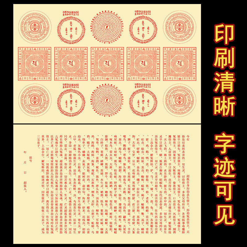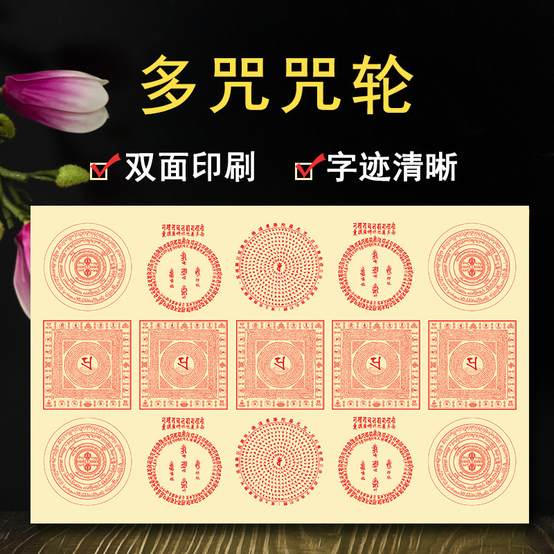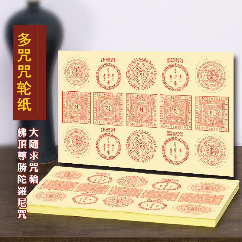 Multi-spell spell wheel 1200 pieces (about 80 pieces)Six-way Vajra Spell about 500 pieces of Great Compassion Spell stickers 5 pieces of Zhiju Tathagata Heart Spell Stickers 5 pieces of Shurangama Spell Multi-spell unity stickers 5 pieces of Guanyin Heart Spell Six-word large