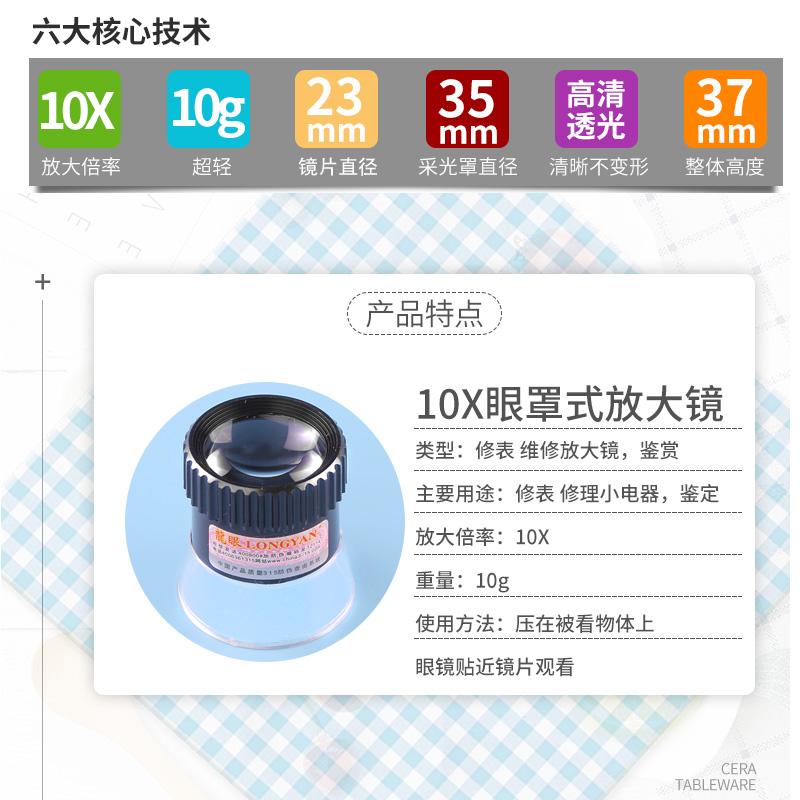 Dragon eye cylinder 10 times magnifying glass 10 times eyepiece blindfold mirror portable jewellery mirror handheld mini table-type circuit board Watches Maintenance Fabric Stamps Ancient Play Connoisseurre