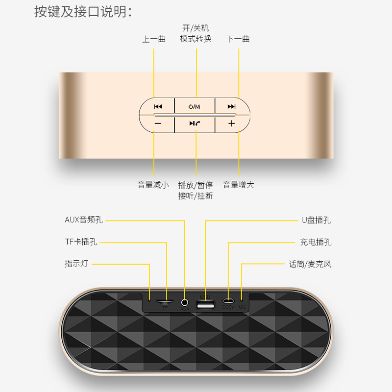 Rose gold dot song version (FM radio TF card U disc playing super-volume overweight bass) native gold point song version (FM radio TF card U disc play oversized volume overweight)