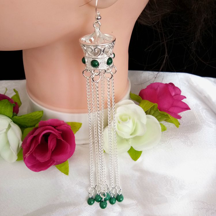 Mongolian Element Earrings National Wind Long Version Flow Sualloy Silver Plated Earrings Wedding Dance Performance Ornament