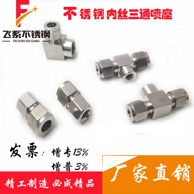 Stainless steel inner wire three-way card sleeve joint straight-through elbow three-way inner wire spray seat fountain spray spray cold mist