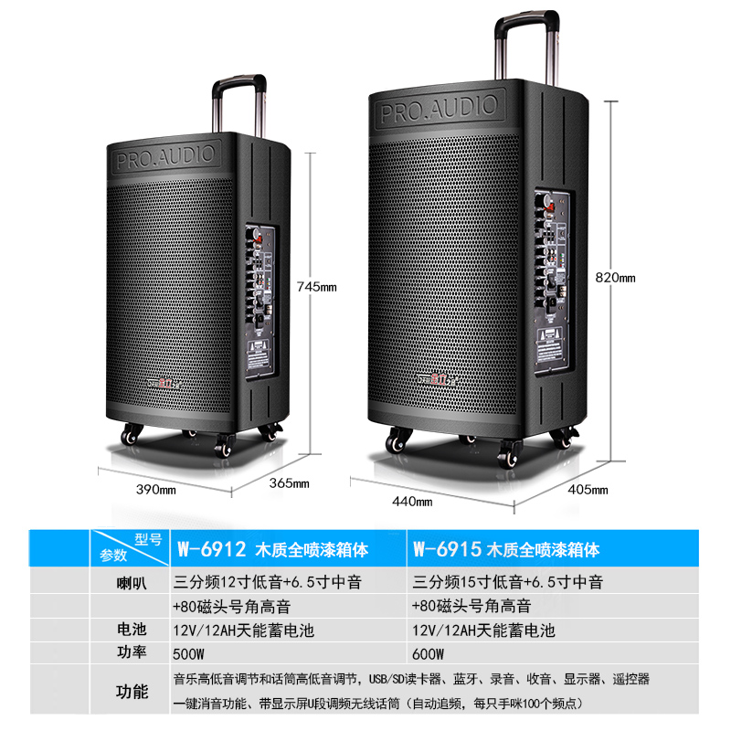 Sky Music W12 Inch Outdoor Performance K Song Sound Speaker With Wireless Microphone Bluetooth 15 Heavy Bass Stage Square Dance Professional Active Pull-Lever High Power Big Volume Square Dance Special