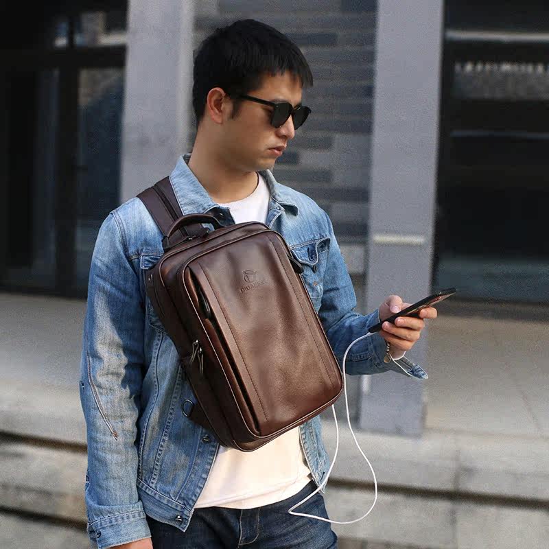 Men's backpack single shoulder messenger bag all-match large-capacity multi-function chest bag men's leather soft leather shoulder bag cowhide dual-use