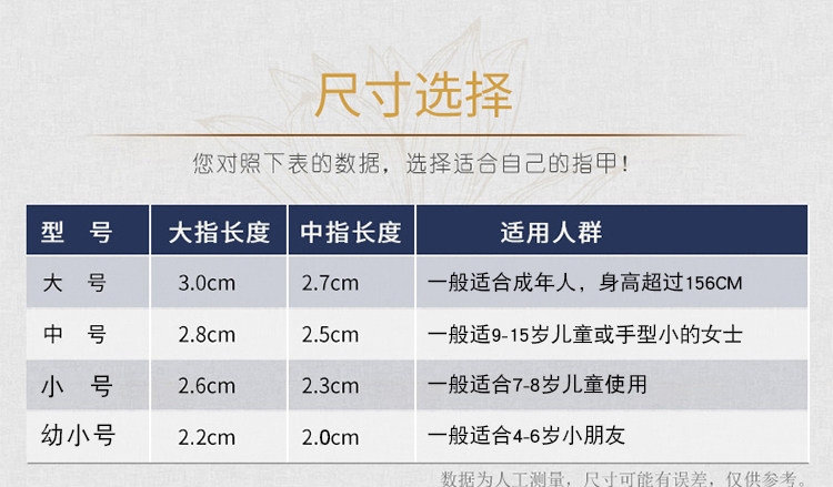 Purchase Tips Remote Finger Type (Large Size) 8 Pieces Remote Finger Type (Medium Size) above 155 Height 8 Pieces 9-13 Years Old Thin Type (Large Size) 8 Pieces Thickness 1 6-1 7 Thin Type (Medium Size)