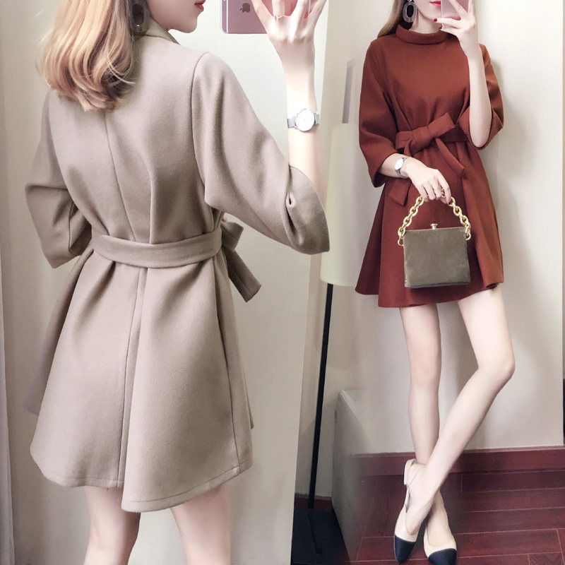 Small sub-woolen dress for women's clothing 2021 autumn and winter new collection waist display slim temperament popular little fragrant wind skirt