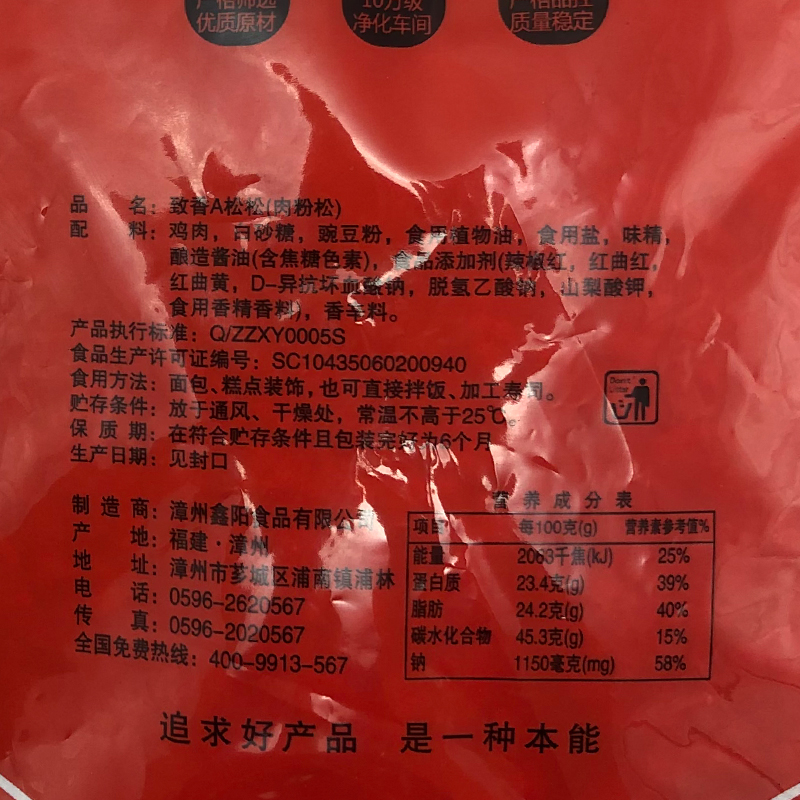 Chicken White sugar Pea powder Edible vegetable oil Edible salt Monosodium glutamate Brewed soy sauce (with caramel coloring)