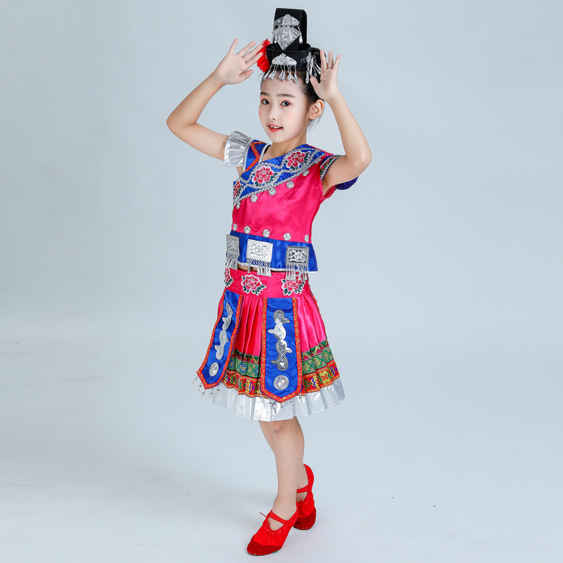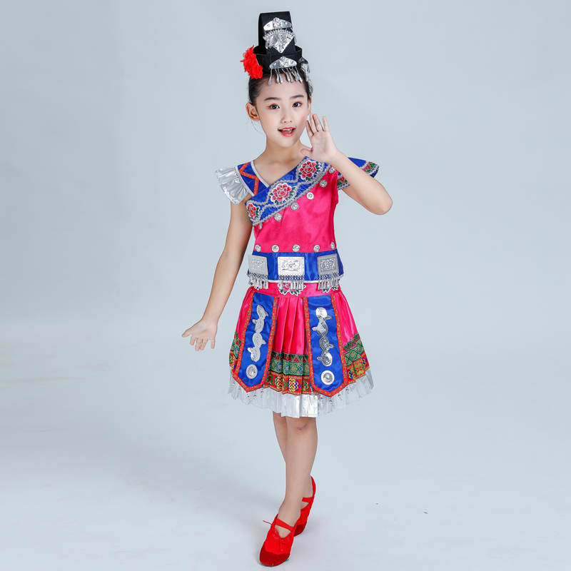 The 10th Xiaohe style stepping on color dance costumes for children Miao costumes for children Yi and Dong minority performance costumes