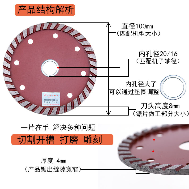 4mm stone cutting grinding sheet sheet thickened concrete stone carving notched sheet cutting and grinding double-purpose diamond saw blade polished