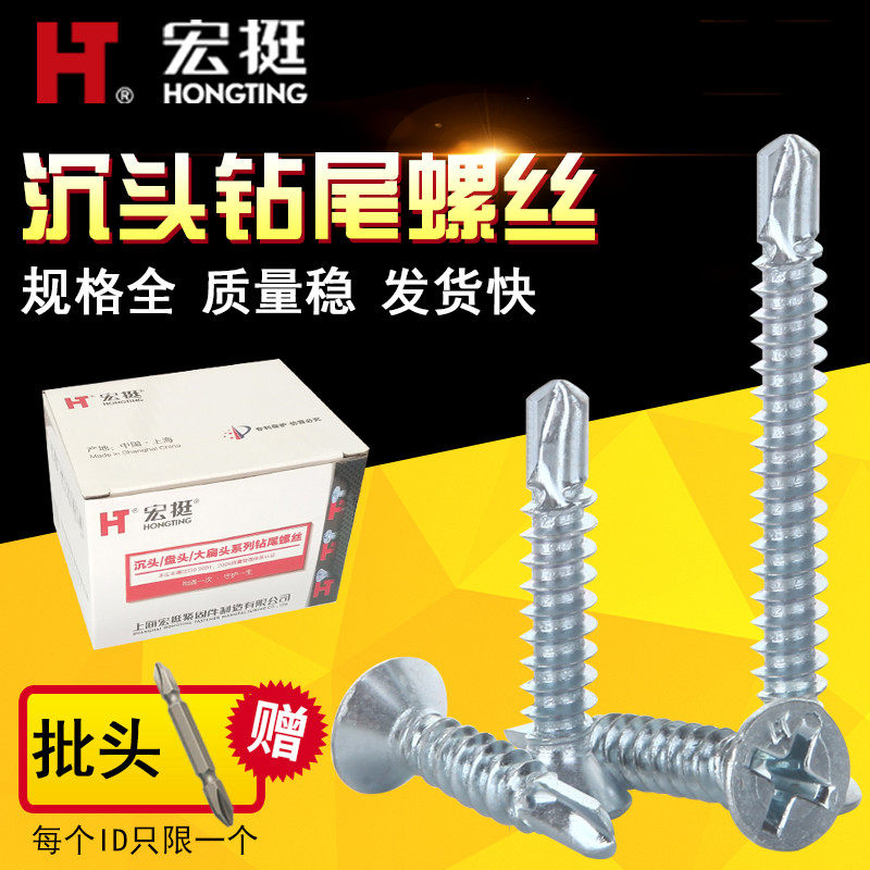 Hongting countersunk head cross drill tail screw Iron color steel tile nail Galvanized flat round head self-tapping self-drilling dovetail screw