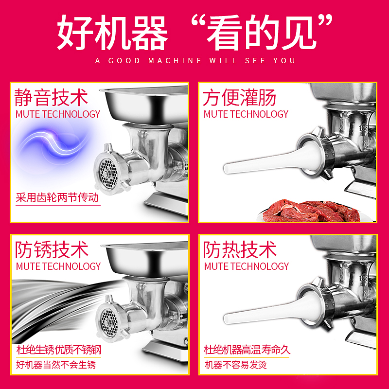 Yidong meat grinder commercial high-power electric stainless steel multi-function desktop minced meat filling enema machine meat shop