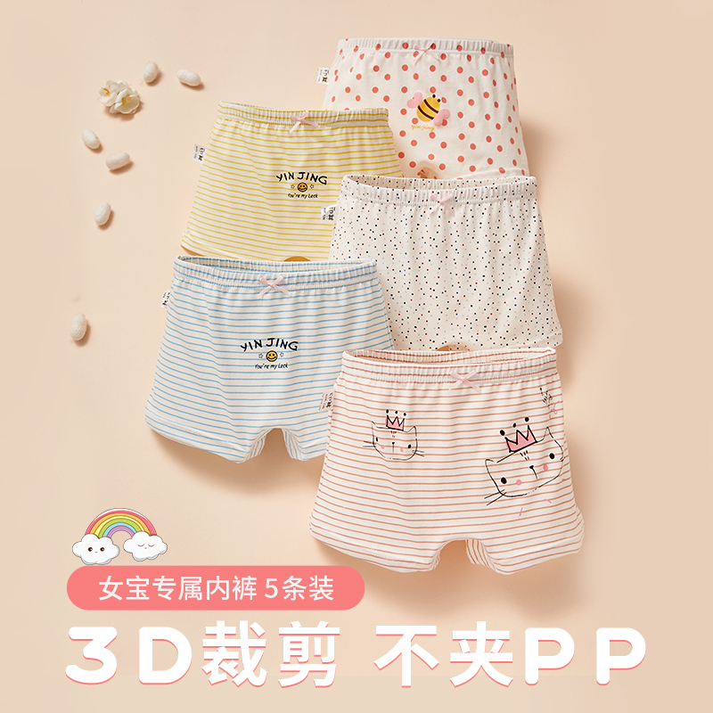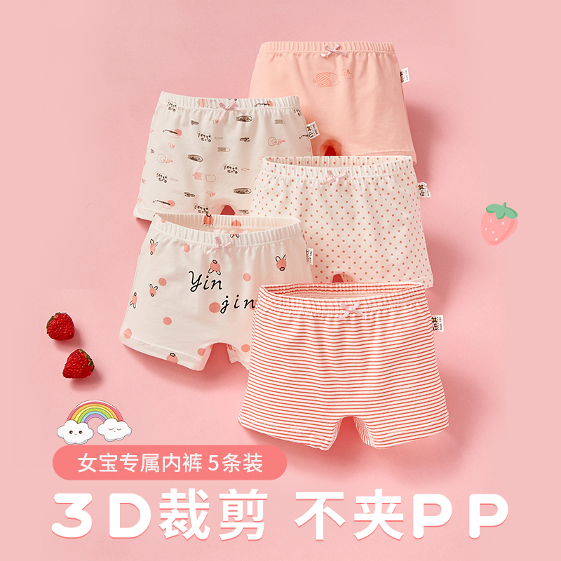 Girls ' pure cotton boxer briefs summer thin female baby big child does not clip PP baby child little girl four-sided shorts