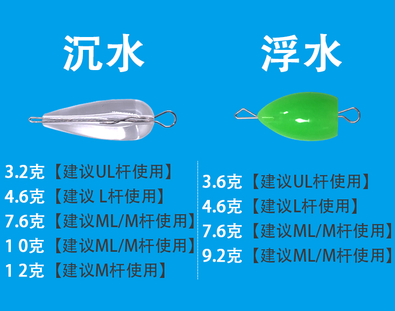 White Yellow Green Dark Blue Orange Color Army Green Sky Blue Rice White Floating Sink Different Grams (Combined Seven) Submerged (different grams of three) floating water (different gram more than four strips) submerged water 3 2 gr (3