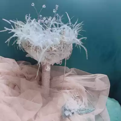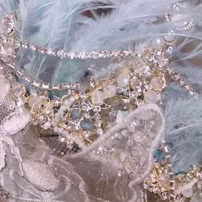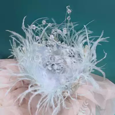 Crystal Feather handmade flower Flower wedding wedding custom diy blue European diamond crown scepter pinky22