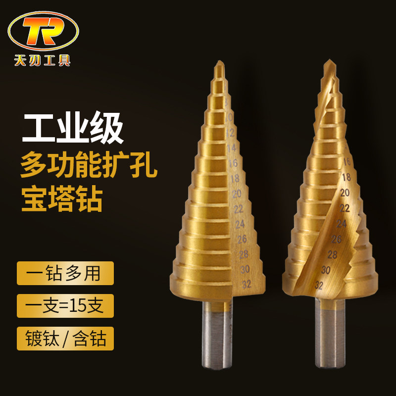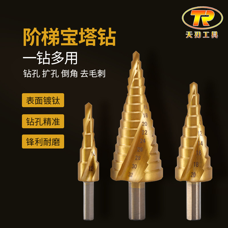 Pagoda drill step metal reaming universal drill drilling multi-function cone drill tower type stainless steel drill
