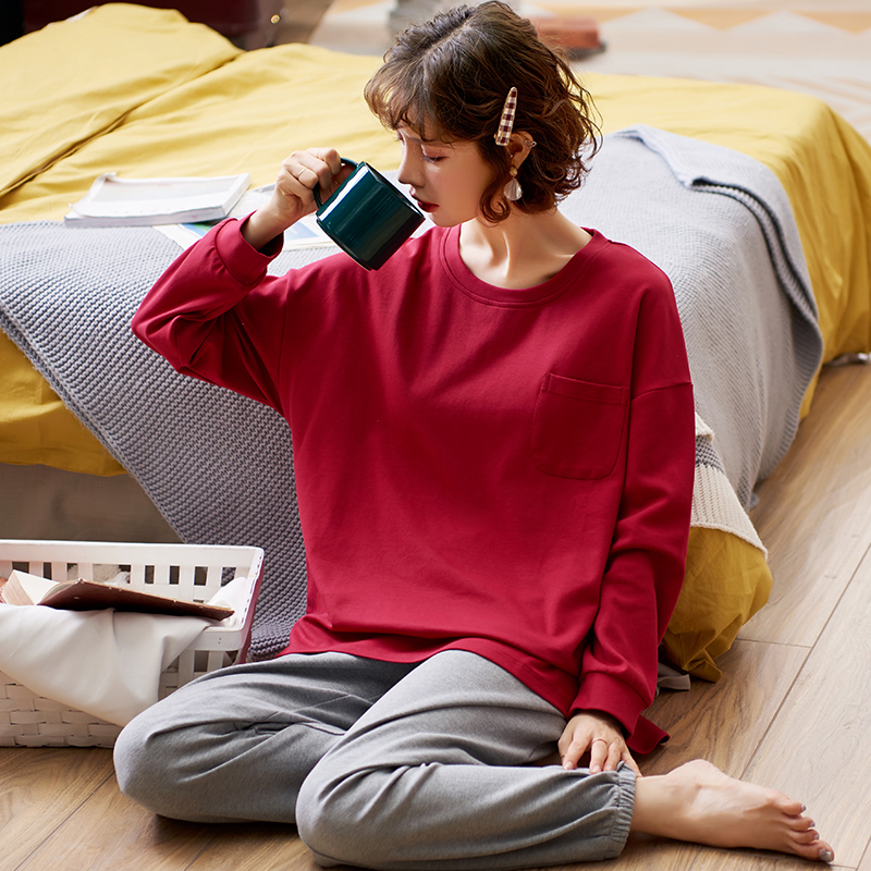Pajamas women's long-sleeved cotton spring and autumn Korean version of casual sports girl student home clothes cotton can be worn outside
