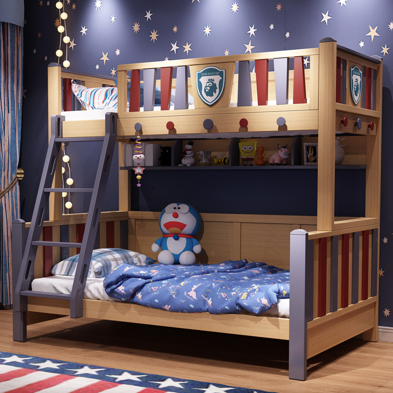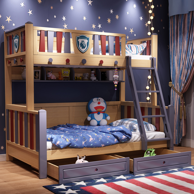 Solid wood high and low bed Solid wood high and low bed double drawer Solid wood high and low bed slide Solid wood high and low bed double drawer slide