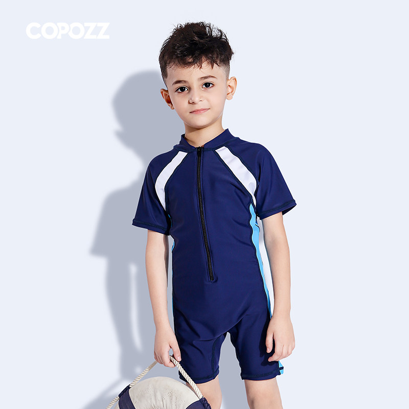 COPOZZ children's swimsuit one-piece boys and girls flat corner swimsuit small, middle and large Children short sleeve quick-drying diving suit suit