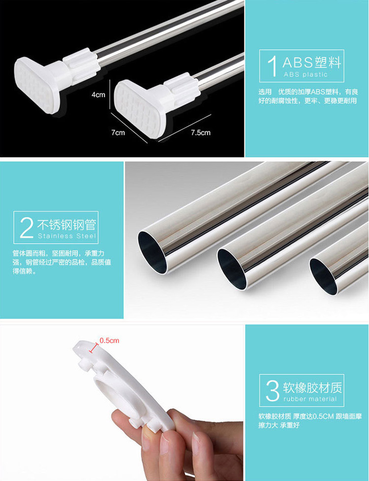 Free Punch Telescopic Rod Bath Curtain Rod Hanging Clothes Clotheshorse bathroom Makeup Room Frame Window Curtain Rod Bedroom Telescopic