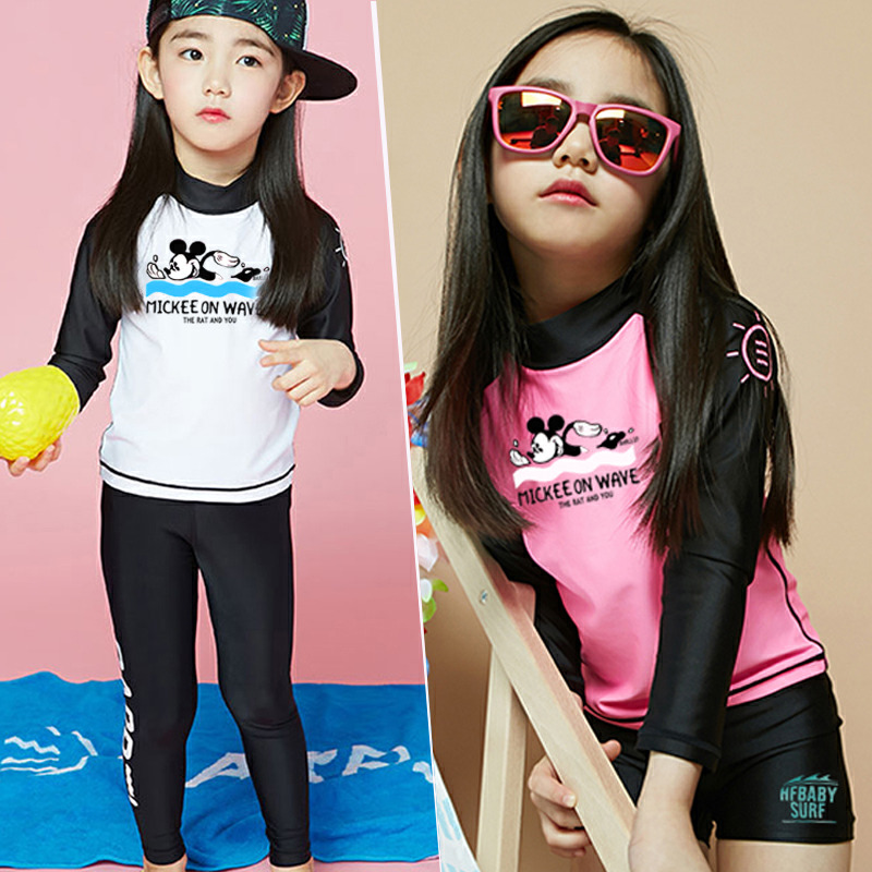 Children's swimsuit Boys and girls Middle and older children baby long-sleeved trousers split sunscreen quick-drying parent-child girls swimming clothes