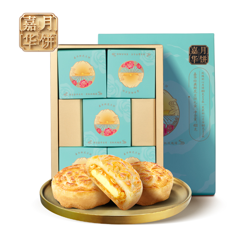 Rose custard moon cake *3, Jasmine custard moon cake *2