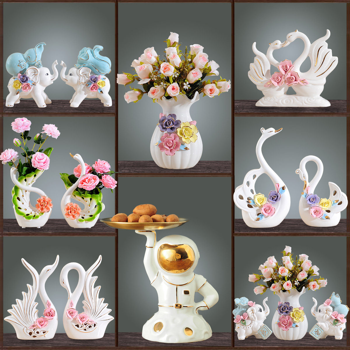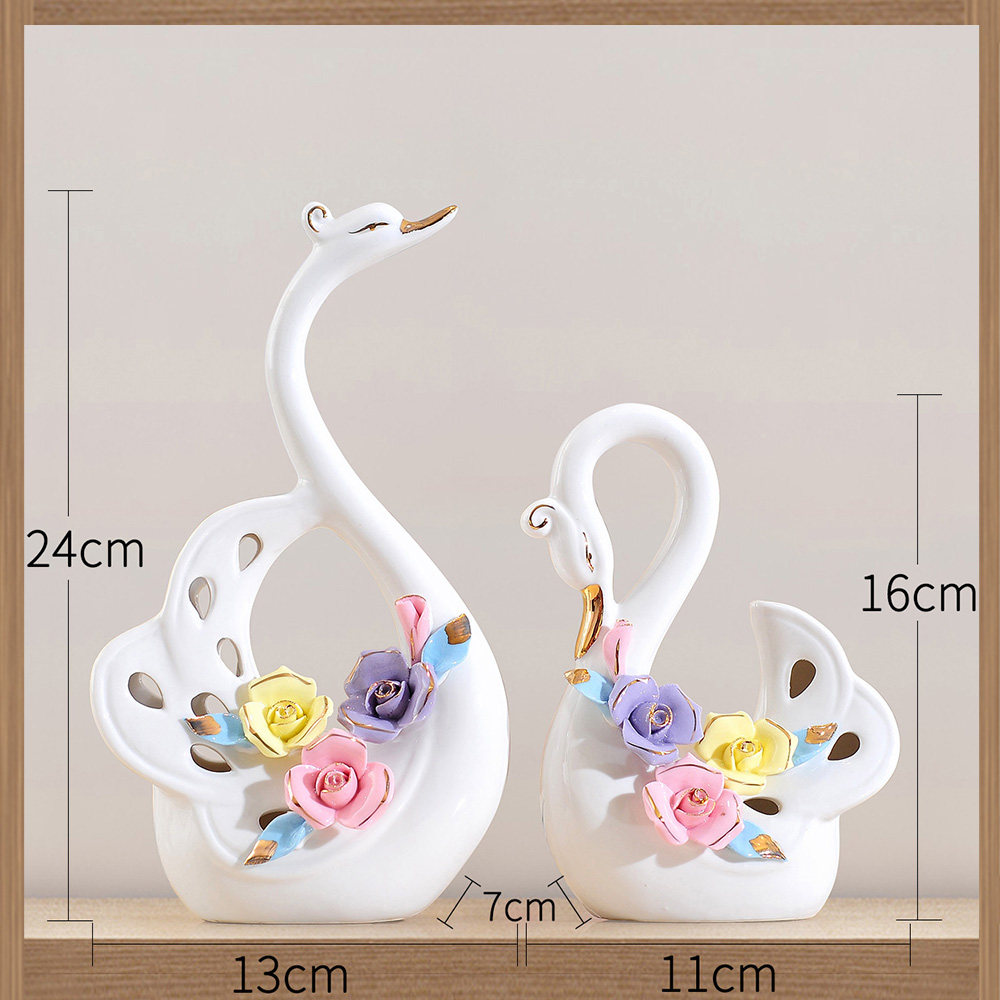 Kiss Swan (Top 50 Special Promotions) Large Kiss Swan Couple Swan Couple Swan A Couple Swan A Vase Flower Vase 2 Dried Flowers Gold-plated White Bottle Dried Flowers