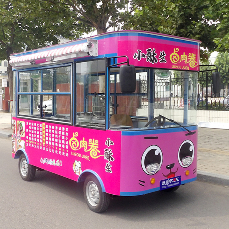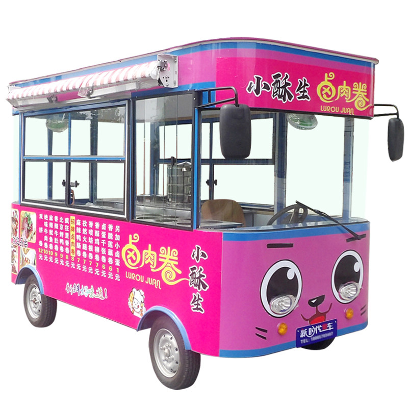 Multifunctional electric four wheel breakfast car frame stall cart Oden fried skewer spicy hot custom mobile snack cart