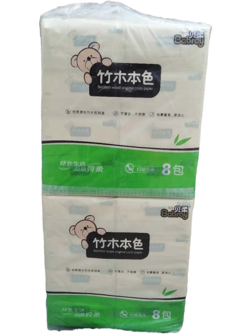 Beirou bamboo and wood natural color extractable tissue paper 8 packs Jiangsu, Zhejiang and Shanghai FCL 10 packs 80 packs