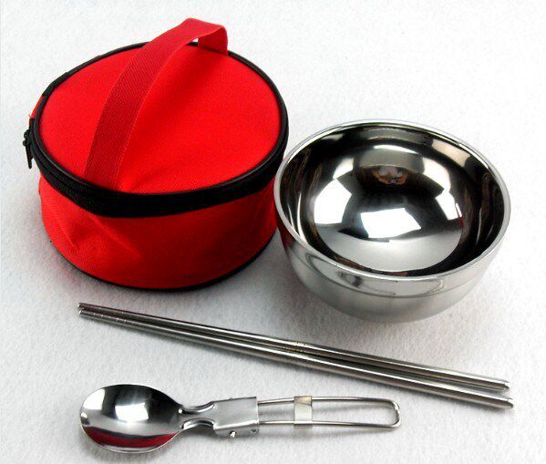 Stainless steel travel tableware package single-person folding spoony chopstick insulation bowl outdoor camping portable bowl package