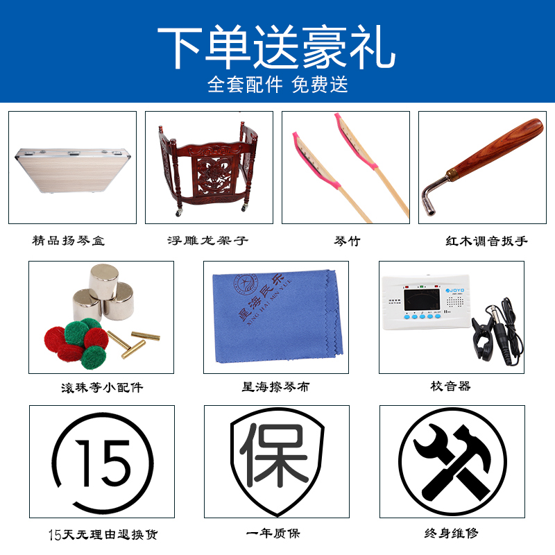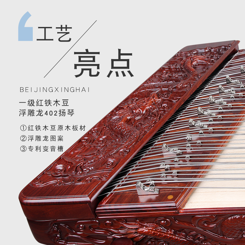 Xinghai 402 Dulcimer musical instrument first-class red iron wood bean relief Long Yangqin professional performance dulcimer 8623F-A
