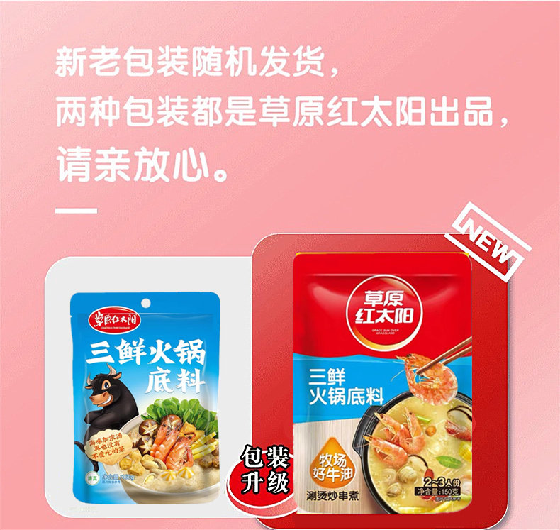 Three fresh base material 150 * 2 bags of three fresh bottoms material 150 * 5 sacks of butter spicy 150g * 2 sacks of butter and spicy 150g * 5 sacks of three fresh bottom material 1 bag of butter and spicy 1 bag
