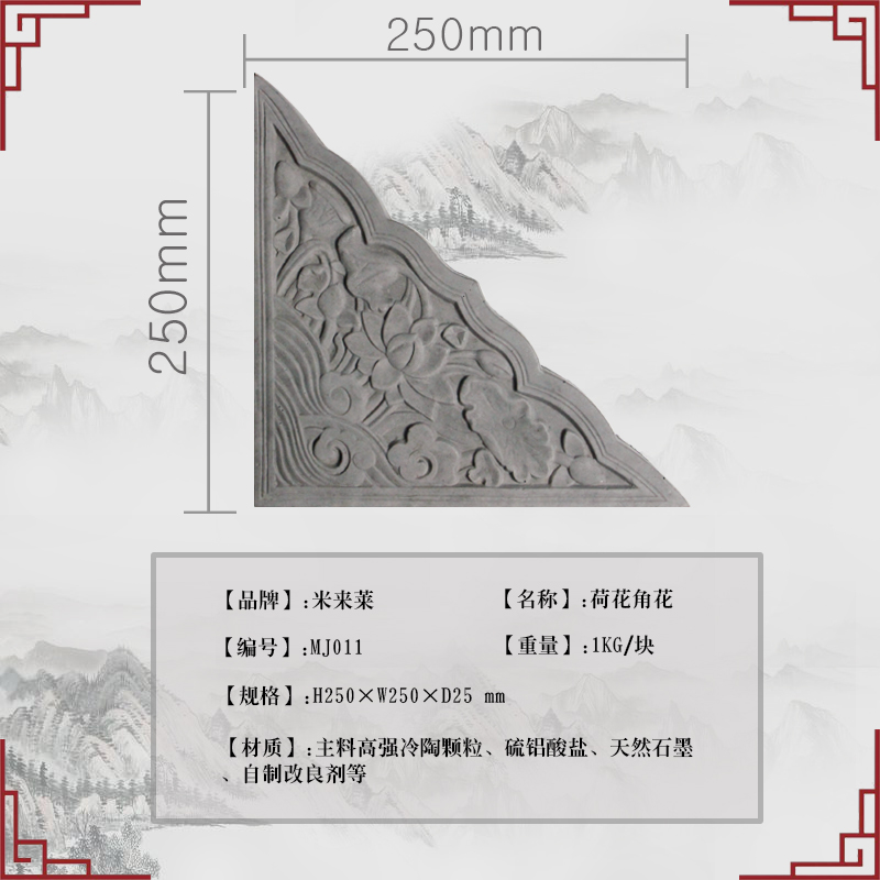 Milai Chinese style antique lotus flower corner flower quadrilateral decoration brick engraving wall and shadow wall right angle four-courtyard decoration building material
