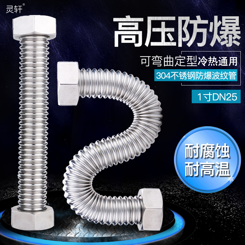 1 inch 304 stainless steel bellows high-pressure explosion-proof metal hose engineering special cold and hot water inlet and outlet pipe DN25