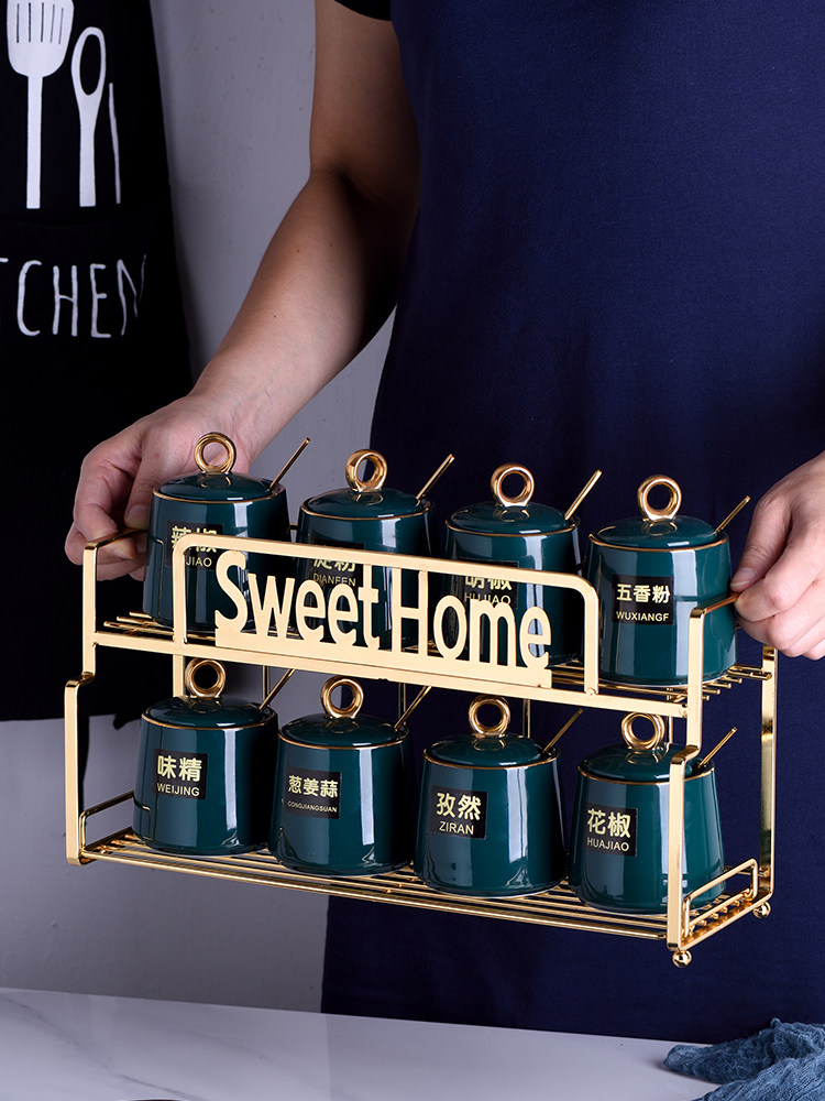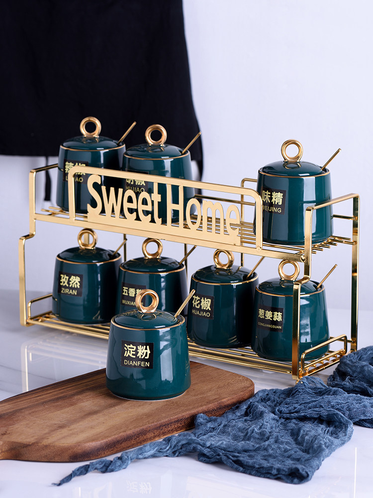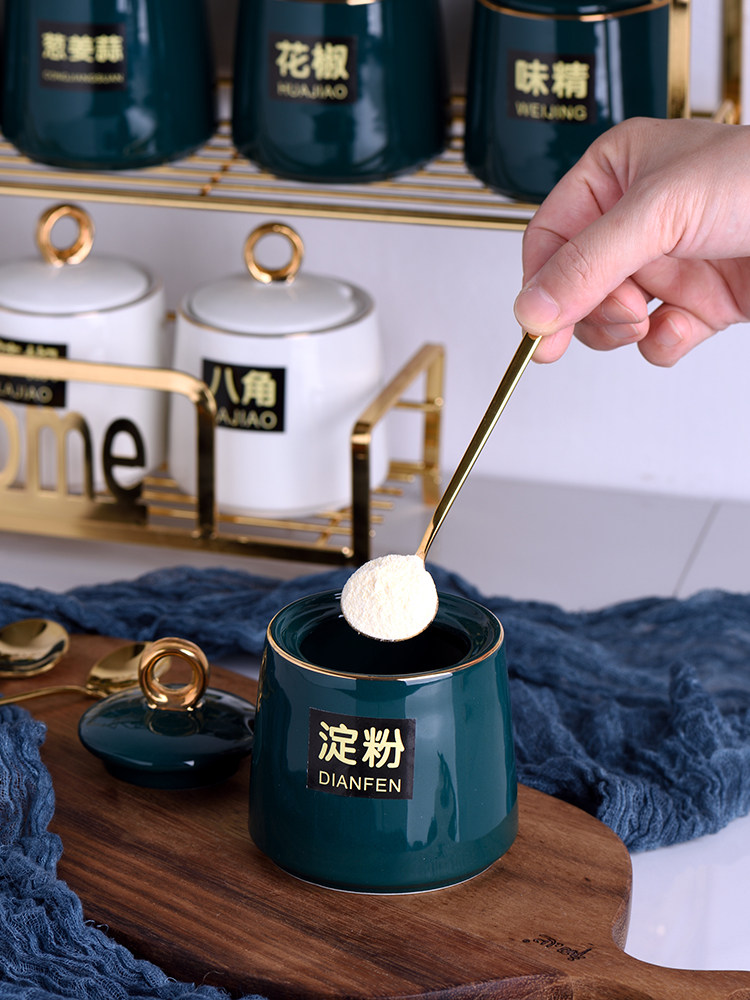Nordic light luxury seasoning box kitchen supplies seasoning jar household combination salt jar with lid and spoon seasoning jar set