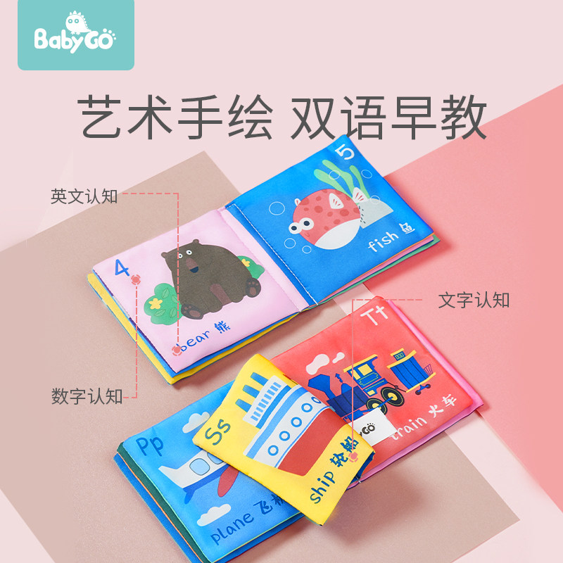 babygo Baby tear-free cloth book Baby three-dimensional bite-free early education toy book Baby book Educational toy