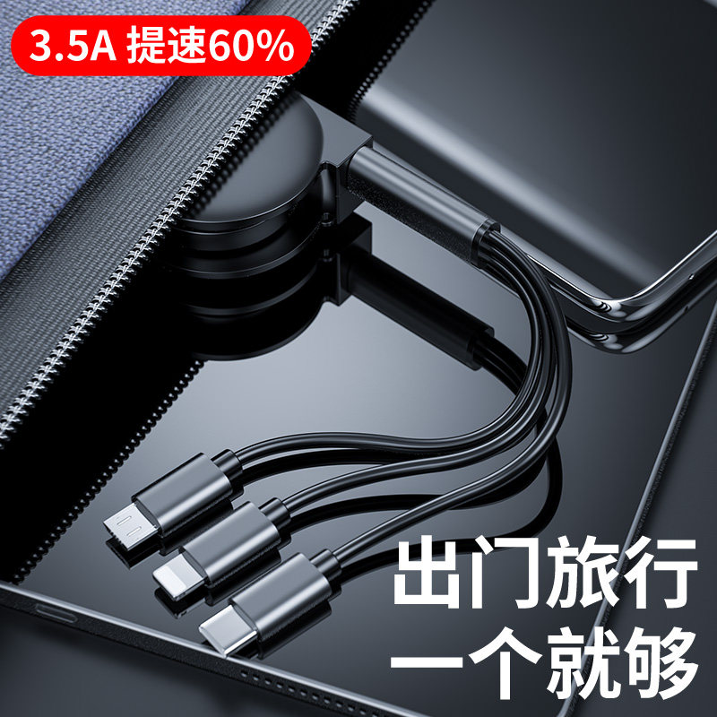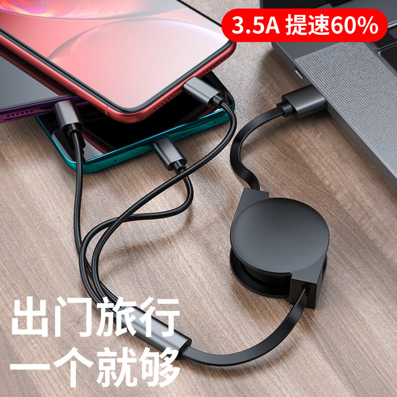 One-to-three data cable telescopic multi-purpose three-in-one charging cable mobile phone fast charging multi-head for Apple Android three-head universal car multi-function type-c 2-in-one 5a charging 7SP