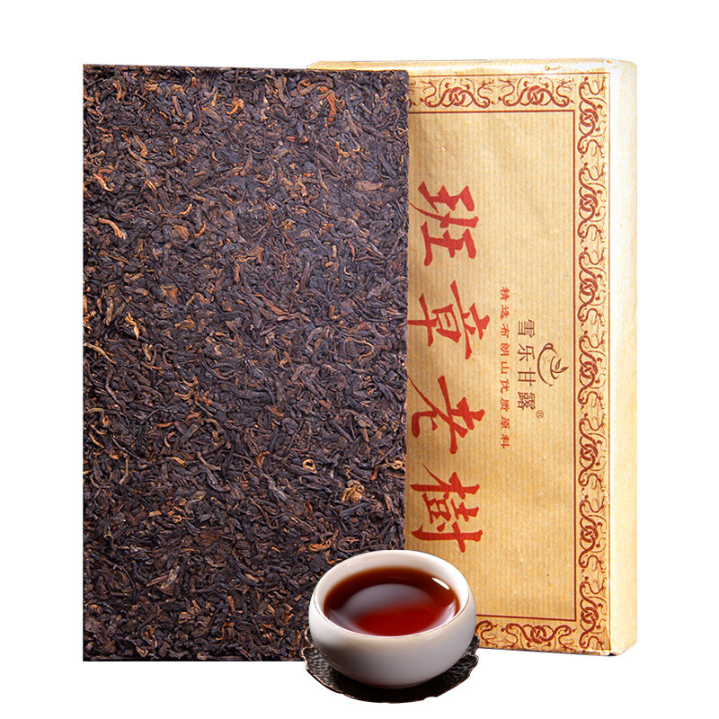 Old Banzhangshan ancient tree Pu 'er tea cooked 2 jin tea brick 2010 Menghai Yunnan brown gold bud cooked Pu 1000g