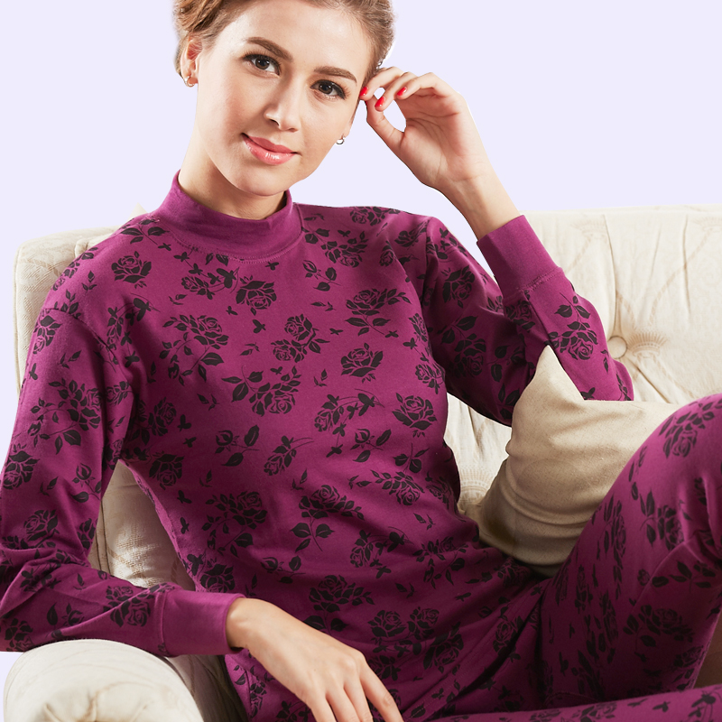 Long johns women's cotton sweater elderly middle-aged and elderly fever clothes grandma sanitary pants suit mother half turtleneck loose
