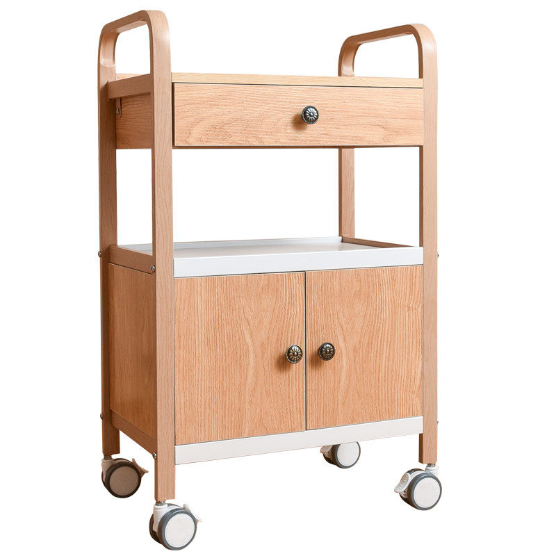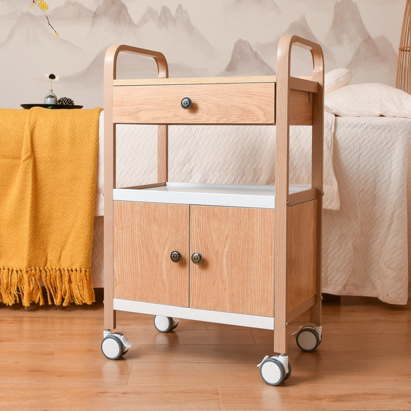 Original Wood Color Beauty Stroller Sun Style Tool Car Rack With Drawer Cabinet Multifunction mobile with foot brake cart