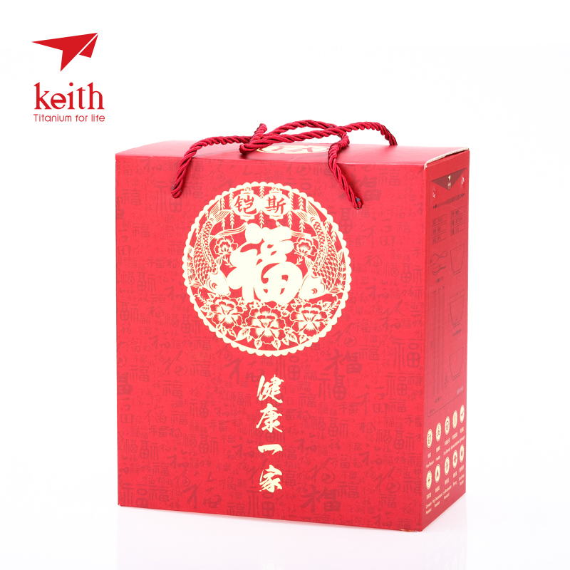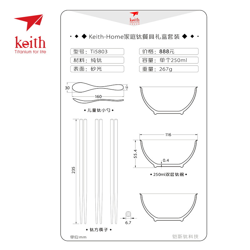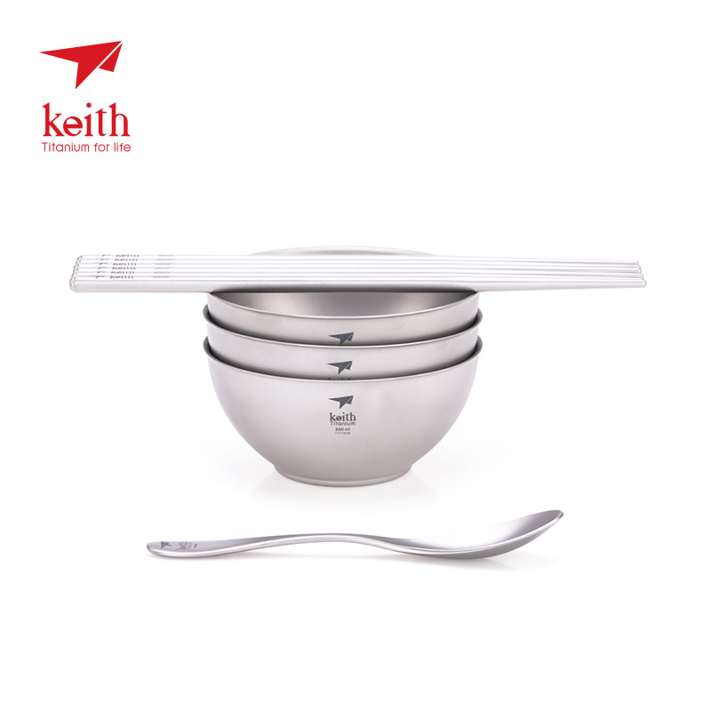 keith sheathed pure titanium rice bowl with bowls chopsticks scoop cutlery double layer anti-burn and heat insulation bowl double layer chinese titanium bowl