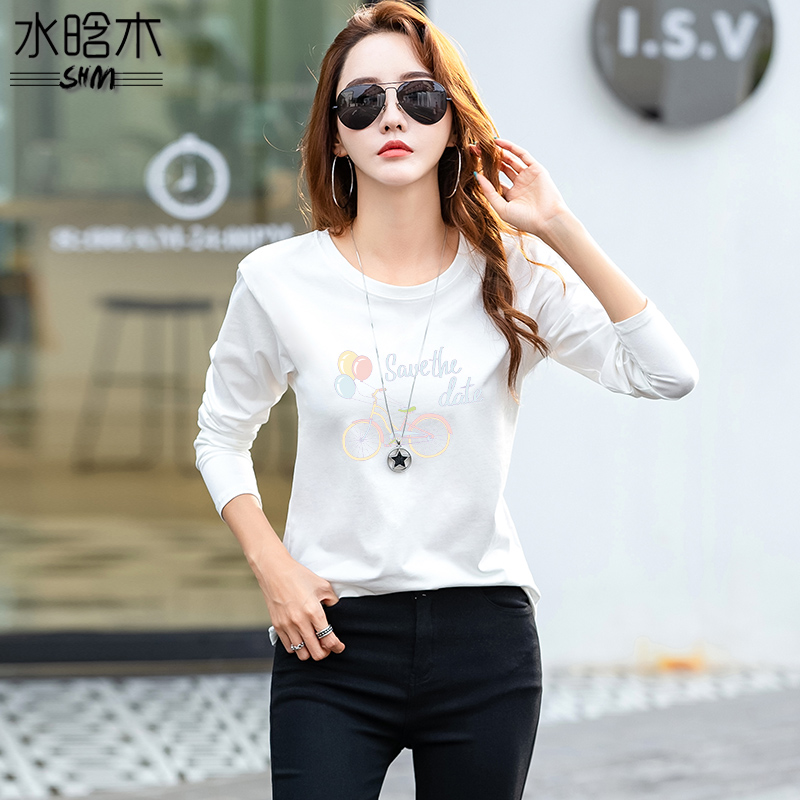 2019 new long sleeves T-shirt female spring autumn season easy minimalist original Cebu girl fashion 100 lap outside wearing a T-shirt