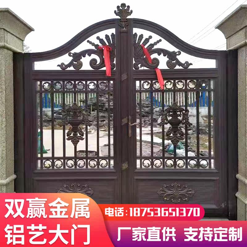 Aluminium Art Gate Courtyard Villa Door Open Courtyard Door Aluminum Alloy Push-and-pull Electric Double Door Villa Yard Aluminum Door