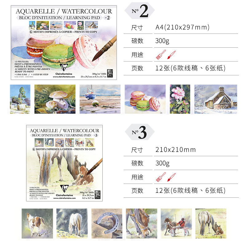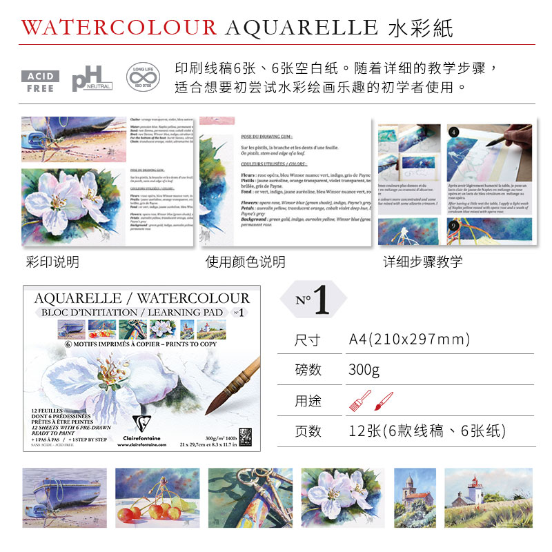 French CF Klefontein Water colour paper 300g 6 lines draft 6 sheets of paper Single Ben-Taobao