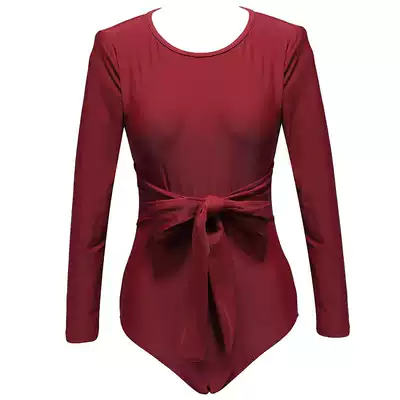 MEMORYBABY NEW vintage burgundy long-sleeved sunscreen stunning back bow design one-piece swimsuit female